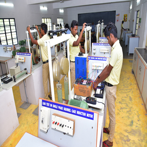 This lab is purposely designed to teach the aspects of electrical machines.This laboratory is equipped with various electrical machines such as DC motors( Series motor, Shunt motor), DC generators( Series generator, Shunt generators), AC three phase motors (Induction motors, Synchronous motors), Alternators ( Salient pole type and Cylindrical rotor type), single phase and three phase Transformers. Through hands-on experiments with real machines, students gain practical experience on transformers and various types of machine drives.The laboratory can also be used for project work related to electrical machines and energy conversion.